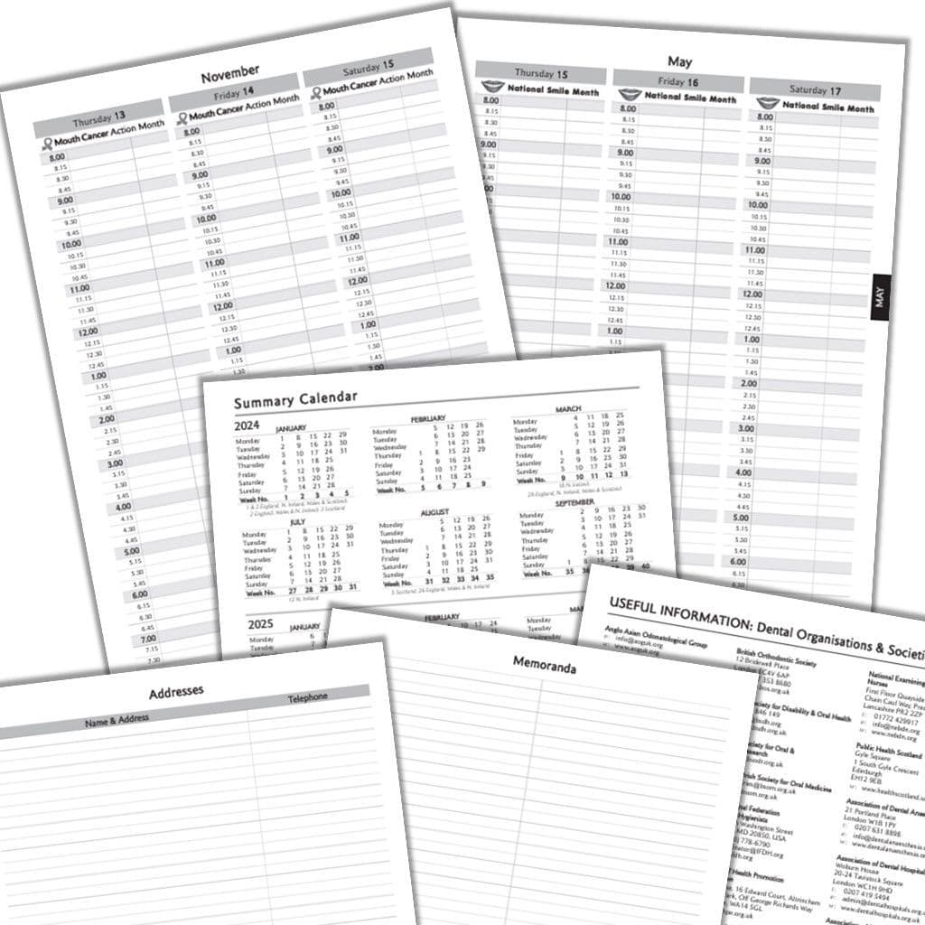 This robust hardbound book is of A4 size and allows for 15 minute appointments from 08.00 to 20.00 and a 6 day view across each open double page. Monday to Saturday.