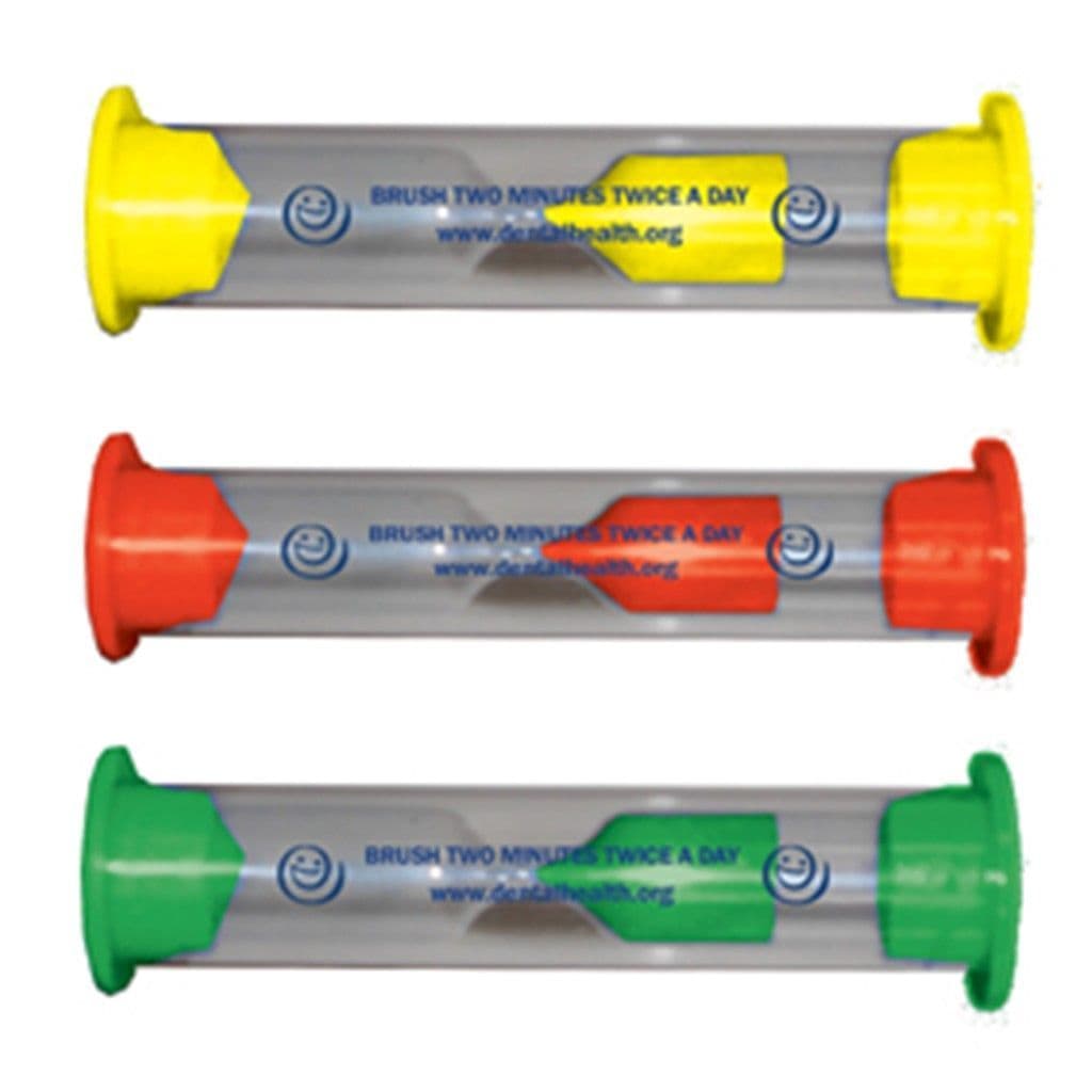 Help extend brushing to 2 minutes and make a difference to oral health, giving your patients a colourful sand timer as a visual cue to show how long they should be brushing their teeth.